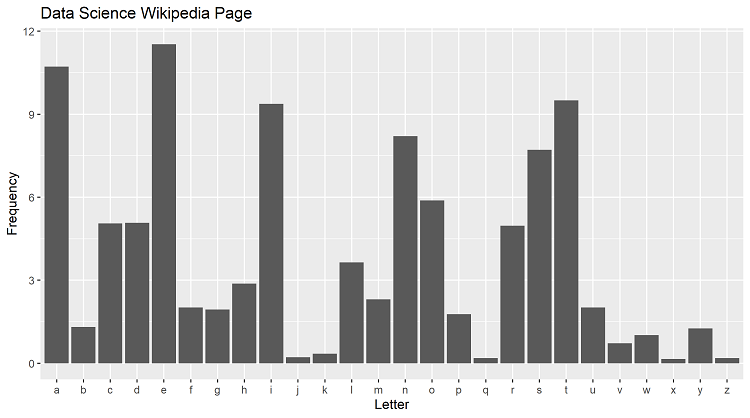page of Wikipedia to get the letter frequencies. The code then pulls the overall letter frequencies for the English language. Finally, it saves them together to graph later.