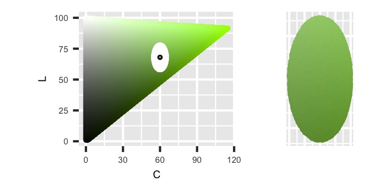 Finally, we can end this post with one more example. For this one, we’ll place the ellipse near the inside of the HCL color space.