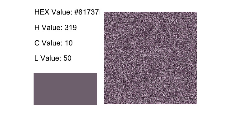 Next, we can see the color falls with all the other colors for the same Chroma value. I think about Chroma values as tree rings. So, this image takes the HCL color space, drills out the center for lower Chroma values, then has you stand in the middle facing the Hue value, pulling the shape away from behind you and laying it flat.