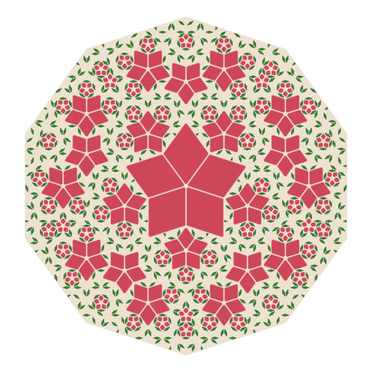I recently worked on a generative art project around Penrose tiling patterns. As I worked through the functions, I decided to throw them into a package, penrosetiling. You can find it here. This package has base data sets and functions to substitute the pattern down through the shapes. There are also vignettes to help get started, use purrr for looping, and clean up images. Hopefully, it will work for you.