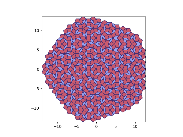 The ‘Point’ class contains the basic information for a point used for a tile. It takes in the k-values, determines the coordinates in the tiling space, and saves everything. These will be saved in a dictionary for use when graphing.